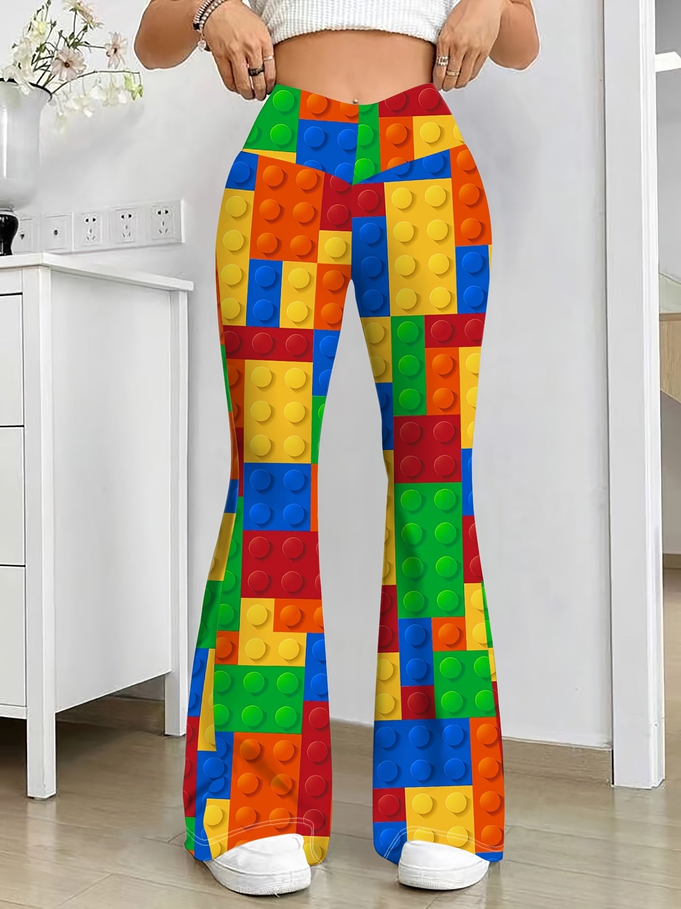 Guy & Dia Colorful 1pc High Waist Flare Leg Pants - Polyester Knit Fabric, Stretchy Bell Bottoms - for All-Season
