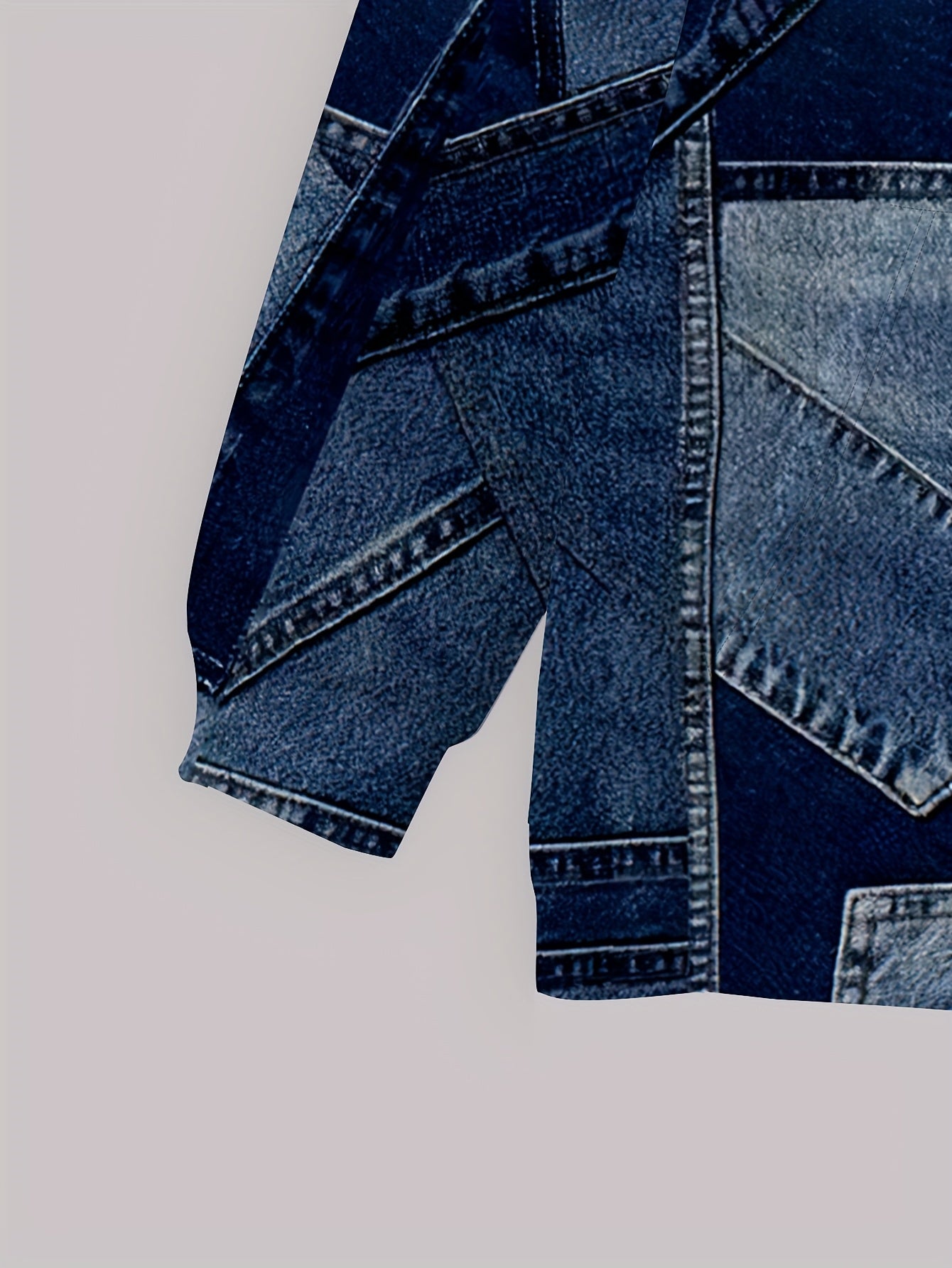 Guy & Dia Women's Plus Size Casual Zip-Up Hoodie - 100% Polyester, Lightweight & Comfortable, Denim Print Pattern, Loose Fit, Spring/Summer/Fall Top, Casual Wear Hoodie | Denim Print Hoodie | Zippered Hoodie