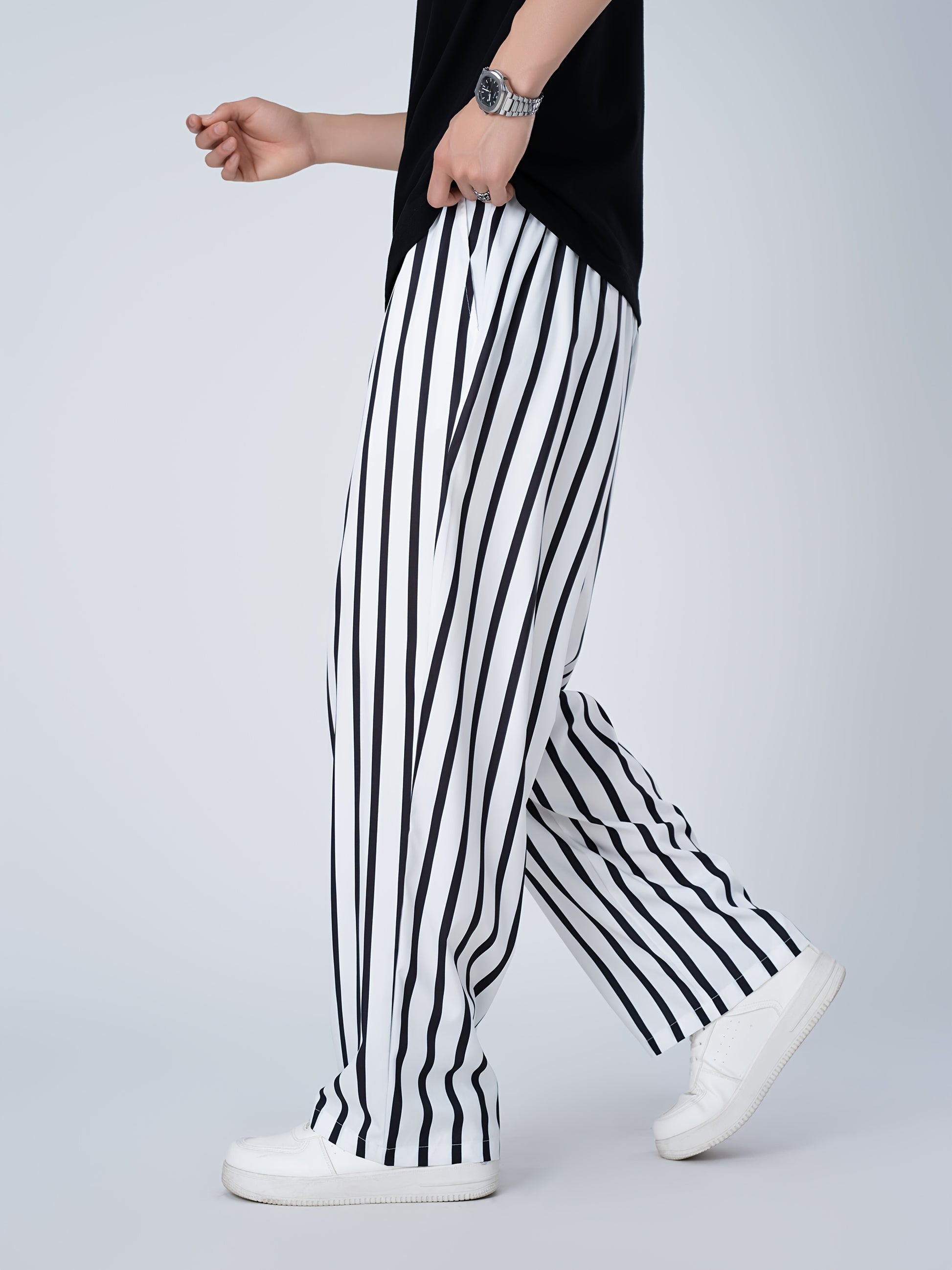 Guy & Dia Plus Size Men's Loose Fit Joggers with Black & White Stripes - Elastic Waistband Casual Sportswear Pants, Machine Washable Non-Stretch Fabric for Gym, Lounge & Casual Attire, Jogging Pants, Gym Apparel, Nontransparent Material