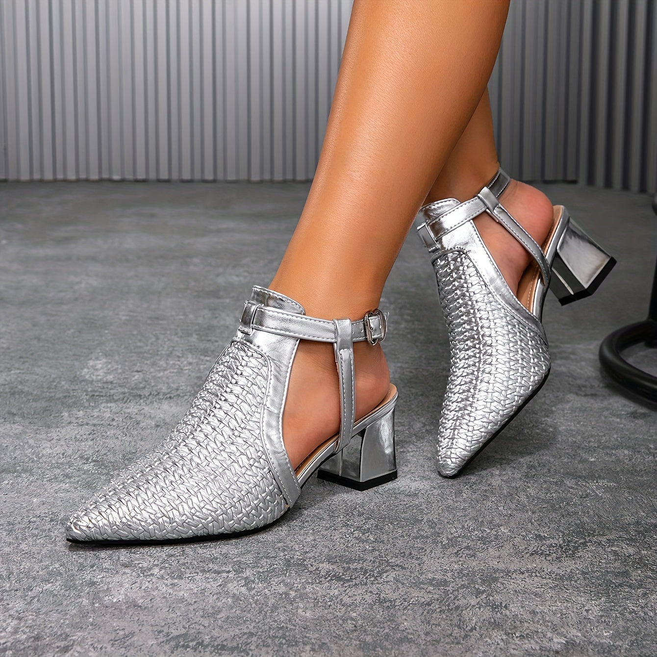 Guy & Dia Women's Elegant Pointed-Toe High-Heel Mules - PU Cover Upper & TPR Sole, Chunky Heel & Back Strap Closure, Golden/Beige/Clear/Black - All-Season Versatile Dress Shoes for Work, Formal & Casual Attire - Comfortable & Durable